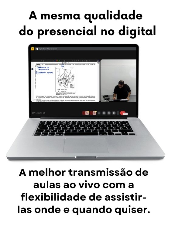 Aulas ao vivo e gravadas em telas interativas: Assista às aulas ao vivo ou gravadas, conforme sua disponibilidade. Mais flexibilidade para você aprender no seu ritmo.
